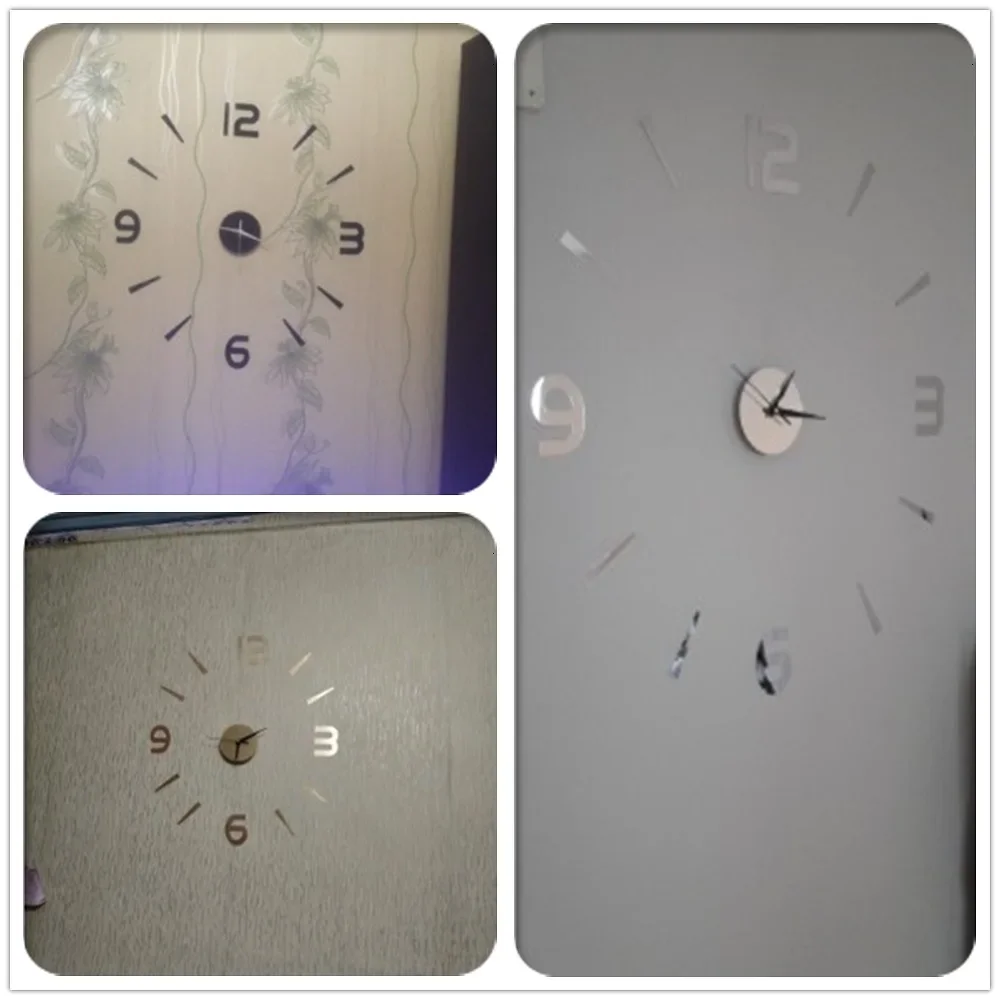 Horloge Décorative avec Stickers Miroir 3D - Quartz Silencieux pour Salon et Bureau